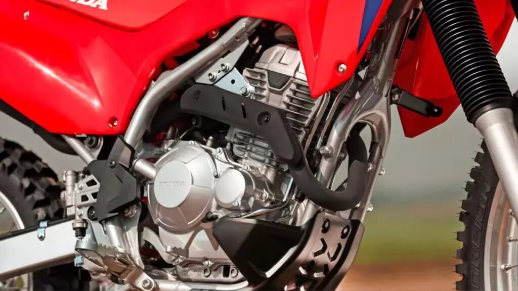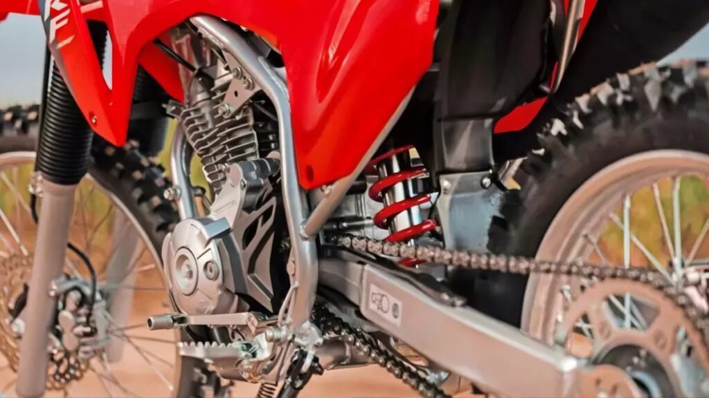 No quesito ciclístico, a Honda manteve o chassi Twin Tube, mas redesenhou ajustes na suspensão para lidar com a potência extra. Os cursos permanecem em 240 mm na dianteira e 230 mm na traseira, mas com novas calibrações que priorizam controle sob carga. O visual, inspirado nas CRF de competição (como a 450R), reforça a identidade esportiva, com plásticos mais agressivos e ergonomia aprimorada para pilotagem em pé.