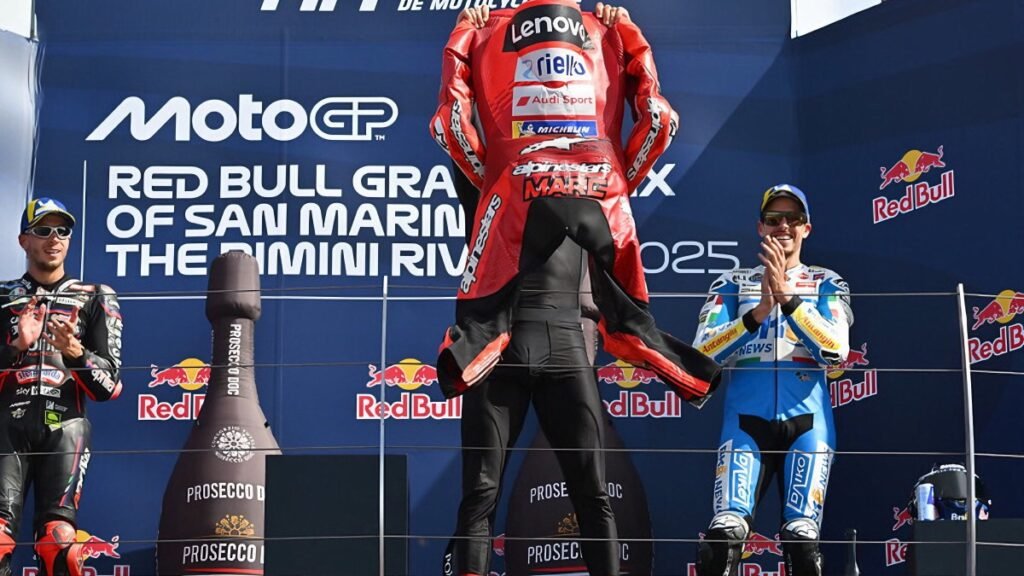 Marc Márquez venceu o GP de San Marino em Misano, somando sua 11ª vitória da temporada. Para além dos números, esse triunfo tem um peso simbólico muito grande segundo comentaristas. Após uma classificação modesta no segundo treino, Márquez largou da quarta posição no Sprint e forçou uma ultrapassagem sobre Marco Bezzecchi para assumir a liderança. Em seguida, ele caiu, permitindo que Bezzecchi cruzasse a linha de chegada em primeiro. No domingo, porém, Márquez retornou com força e venceu a corrida principal, destacando que enfrentou um ambiente adverso, vaias da torcida e pressão psicológica com firmeza.